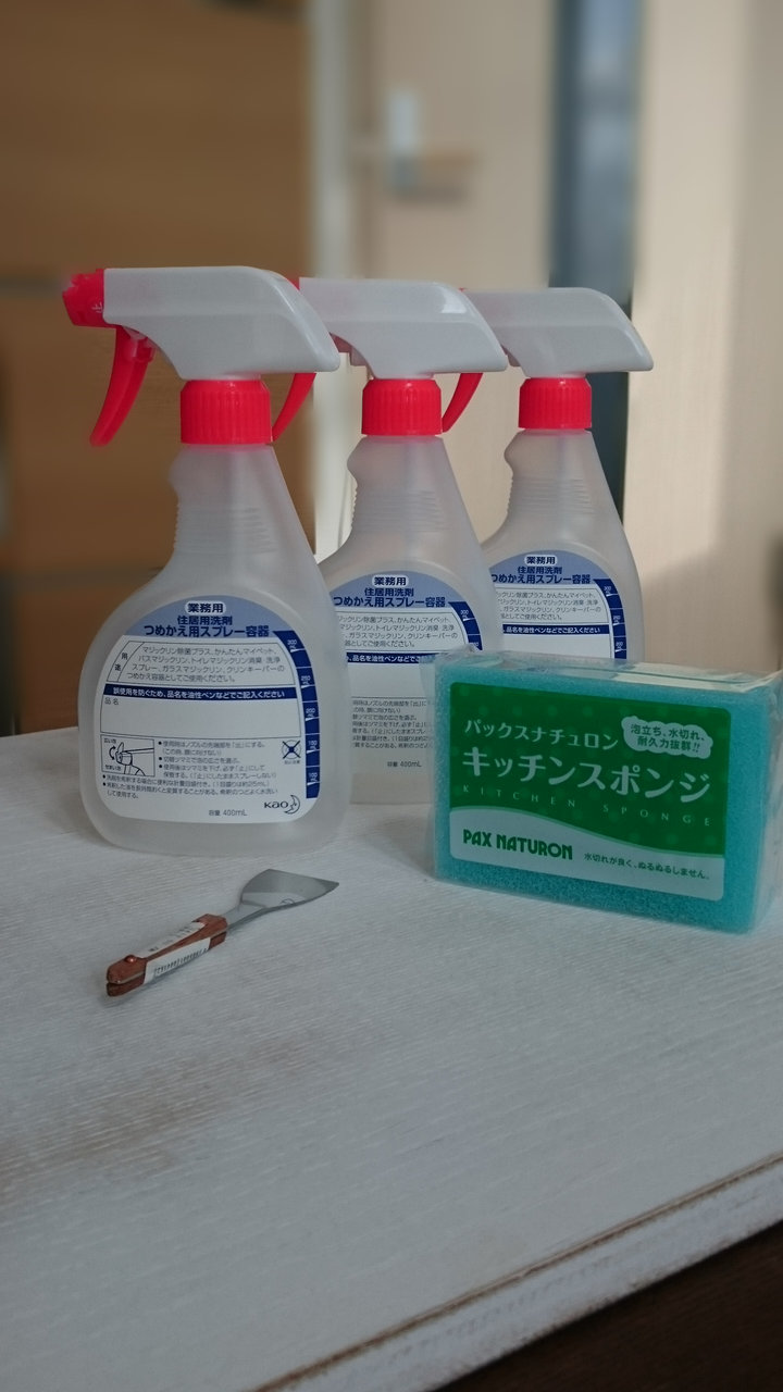 先生がおすすめしていたスプレー容器を買って、さっそく洗剤を手作りしました。