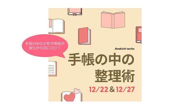 年末特別企画「手帳の中身の整理術&ワークショップ」の開催日が決定しました。