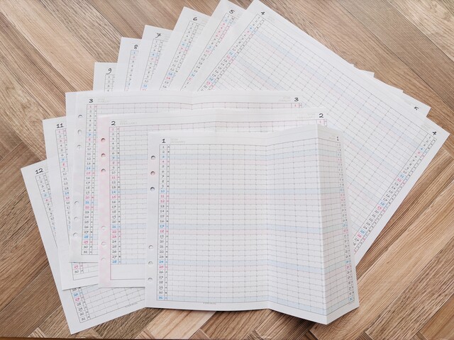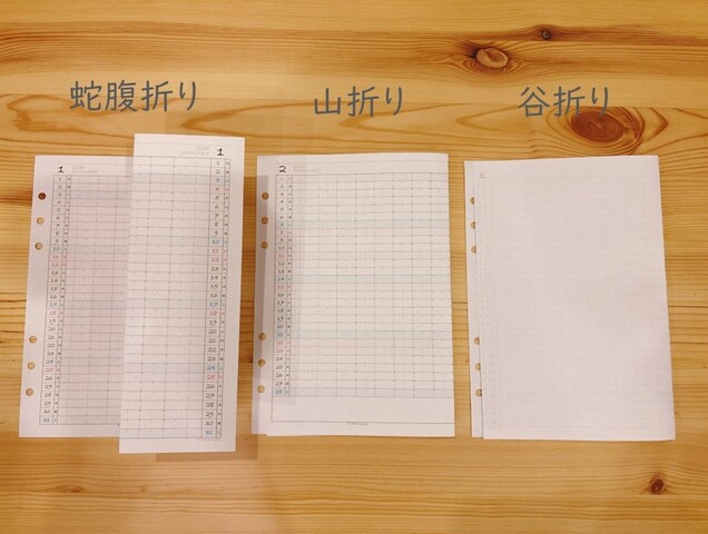 おうち整理手帳のMIXマンスリーは、山折りか谷折りがおすすめ(蛇腹折りは選べません)